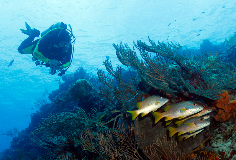Celebrate the 25th anniversary of the Volunteer Fish Survey Project by becoming a citizen scientist with REEF! In 1993, REEF began collecting data on the abundance of marine fish populations. Since then, this project has grown to make up the world's largest marine life sightings database and includes more than 200,000 surveys conducted by volunteer divers and snorkelers. Key Largo, where REEF Headquarters is based, is nicknamed the "dive capital of the world" and was also home to the very first REEF Field Survey Trip. Participants will visit some of the same dive sites visited on that first REEF Trip, to observe how fish populations have changed over time and collect important data to help scientists and resource managers continue to protect the ocean life and habitats. REEF will also offer a week of Ocean Explorers Summer Camp to coincide with this trip, so plan to bring your entire family! We welcome campers aged 7-13. Camp registration will be open in early 2018. For more information about summer camp, visit our Ocean Explorers Camp page. Mixed schools of grunts and snappers are frequently found in Key Largo. Photo credit: Florida Keys National Marine Sanctuary.
