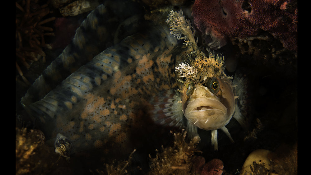 Cold water diving enthusiasts will experience some of the best diving British Columbia has to offer on REEF's Field Survey to God's Pocket Resort. This secluded family-owned resort houses just 12 divers and is the perfect place to spend lots of time underwater finding fascinating creatures, including Wolf Eels, Giant Nudibranchs, Puget Sound King Crabs, a variety of young rockfish, anemones, shrimp, and all sorts of other underwater life, even the Giant Pacific Octopus. The resort's 40 foot dive boat is outfitted with various unique amenities, including an elevator to help you get back onboard comfortably at the end of your dive! This trip will be led by Janna Nichols, an expert on temperate fish and invertebrate identification throughout the region. Lucky surveyors could find the cryptic Decorated Warbonnet at God’s Pocket.